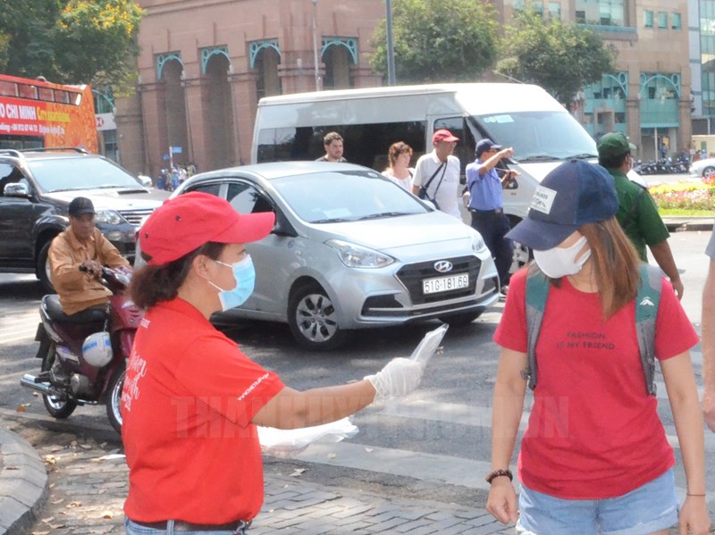 Phát khẩu trang miễn phí trước khu vực Bưu điện TP.(Thanhuytphcm.vn) – Trung tâm báo chí TPHCM vừa có thông tin về buổi giao ban trực tuyến của Ban Chỉ đạo phòng chống dịch bệnh Covid-19 TPHCM diễn ra vào chiều 18/3.