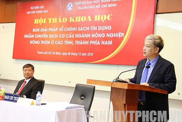 (Thanhuytphcm.vn) - Ngày 6/12, tại TPHCM, Tạp chí Cộng sản phối hợp với Trường Đại học Ngân hàng TPHCM tổ chức Hội thảo khoa học “Bàn giải pháp về chính sách tín dụng nhằm chuyển dịch cơ cấu ngành nông nghiệp, nông thôn ở các tỉnh, thành phía Nam”. Có khoảng 100 đại biểu là đại diện Tỉnh ủy, lãnh đạo các Ban Tuyên giáo, Sở Nông nghiệp và phát triển nông thôn, đại diện Ngân hàng Nhà nước Việt Nam, chi nhánh Ngân hàng Nhà nước, ngân hàng thương mại và các chuyên gia kinh tế, nhà khoa học ở các viện nghiên cứu, trường đại học ở các tỉnh, thành phố phía Nam và TPHCM tham dự hội thảo.