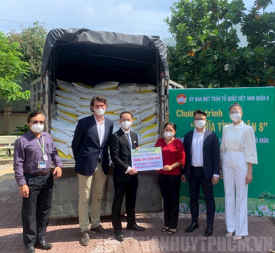 Những bao gạo nghĩa tình của kiều bào được trao đến người dân Quận 8(Thanhuytphcm.vn) – Ngày 17/8, kiều bào Úc Justin Bùi (Bùi Trung Hậu), Chủ tịch Công ty Realms Quỹ tài chính và đầu tư bất động sản đã kết nối và vận động các mạnh thường quân thông qua Ủy ban về người Việt Nam ở nước ngoài TPHCM ủng hộ những bao gạo nghĩa tình đồng bào đến các đơn vị trên địa bàn Thành phố, góp phần động viên nhân dân TPHCM an tâm phòng, chống dịch.