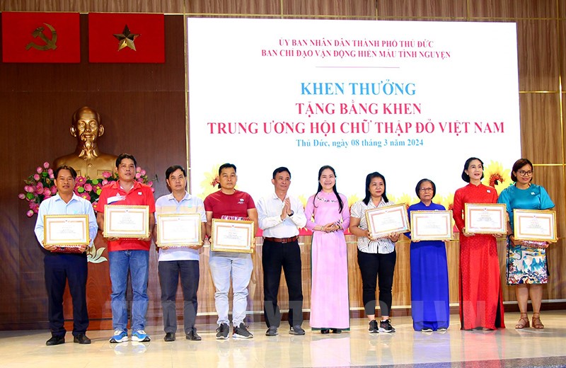Dịp này, Ban Chấp hành Trung ương Hội Chữ Thập đỏ Việt Nam đã tặng Kỷ niệm chương “Vì sự nghiệp Nhân đạo” cho 2 cá nhân và tặng bằng khen cho 15 cá nhân có thành tích xuất sắc trong công tác hiến máu tình nguyện, UBND TPHCM tặng bằng khen cho 32 cá nhân có thành tích hiến máu tình nguyện 20 lần trên địa bàn TPHCM, UBND TP Thủ Đức khen thưởng 61 tập thể và 75 cá nhân tích cực tham gia phong trào hiến máu tình nguyện năm 2023.