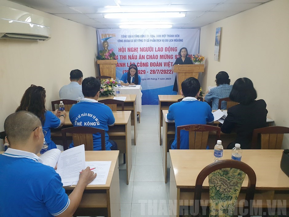 Hội nghị người lao động năm 2022(Thanhuytphcm.vn) - Sáng 28/7, Công ty Cổ phần Dịch vụ Du lịch Mê - Kông thuộc Tổng Công ty Du lịch Sài Gòn (Saigontourist Group) tổ chức Hội nghị người lao động năm 2022 và Hội thi nấu ăn nhân kỷ niệm 93 năm Ngày thành lập Công đoàn Việt Nam (28/7/1929 - 28/7/2022) và kỷ niệm 47 năm Ngày thành lập Saigontourist (1/8/1975 - 1/8/2022).