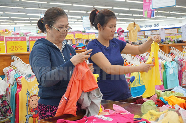 Người tiêu dùng mua sắm hàng hóa tại siêu thị Co.opmart
