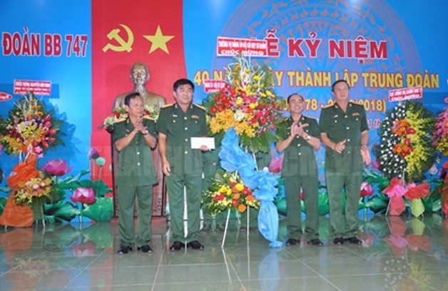 Thiếu tướng Nguyễn Văn Nam, Phó Tư lệnh Quân khu 7 tặng hoa chúc mừng Trung đoàn 747 tại lễ kỷ niệm(Thanhuytphcm.vn) - Ngày 21/9, Trung đoàn Bộ binh 747, Sư đoàn 317 (Quân khu 7) đã tổ chức họp mặt kỷ niệm 40 năm Ngày truyền thống (23/9/1978 – 23/9/2018). Đến dự có Thiếu tướng Nguyễn Văn Nam, Phó Tư lệnh Quân khu 7.