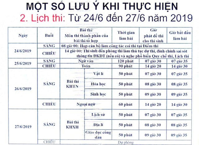 Lịch thi cụ thể Kỳ thi trung học phổ thông Quốc gia 2019.(Thanhuytphcm.vn) - Ngày 20/3, Bộ Giáo dục – Đào tạo (GD-ĐT) cho biết lịch thi kỳ thi trung học phổ thông (THPT) quốc gia 2019 sẽ diễn ra trong 3 ngày từ 25 đến 27/6/2019.