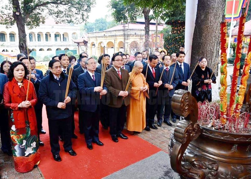 Đồng chí Trần Quốc Vượng, Ủy viên Bộ Chính trị, Thường trực Ban Bí thư cùng các đai biểu đã thành kính dâng hương tưởng nhớ các bậc tiền nhân tại Hoàng Thành Thăng Long.(Thanhuytphcm.vn)- Ngày 28/1, tức mùng 4 Tết, trong không gian linh thiêng của Hoàng Thành Thăng Long, đồng chí Trần Quốc Vượng, Ủy viên Bộ Chính trị, Thường trực Ban Bí thư cùng các đồng chí: Ủy viên Bộ Chính trị, Trưởng Ban Tổ chức Trung ương Phạm Minh Chính; Bí thư Thành ủy Hà Nội Hoàng Trung Hải; Bí thư Trung ương Đảng, Chánh Văn phòng Trung ương Đảng Nguyễn Văn Nên cùng đông đảo người dân Thủ đô… đã thành kính dâng hương tưởng nhớ đức Thái tổ triều Lý đã định đô ở Thăng Long vào mùa thu năm 1010, các triều đại kế tiếp mở mang dựng xây bờ cõi, bồi đắp lịch sử văn hiến nghìn năm, lưu truyền đến thời đại Hồ Chí Minh quang vinh.