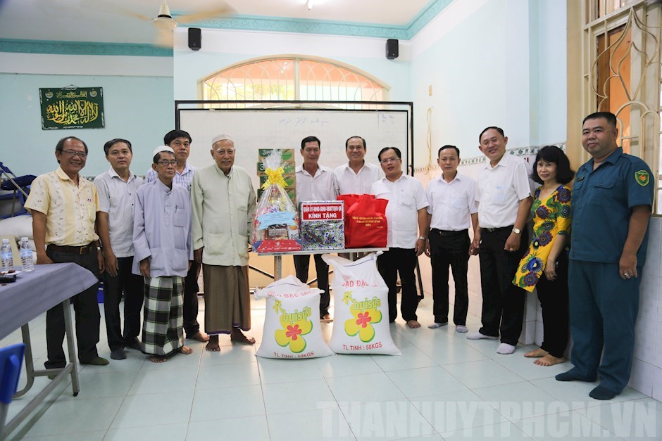 Đoàn cán bộ Quận 8 thăm và tặng quà tại Thánh đường Anwar (Phường 1 Quận 8)(Thanhuytphcm.vn) - Chiều 12/4, đoàn lãnh đạo Quận ủy - Hội đồng nhân dân - Ủy ban nhân dân - Ủy ban Mặt trận Tổ quốc Việt Nam Quận 8 đến thăm Thánh đường Anwar (Phường 1) và Tiểu Thánh đường Mubarak (Phường 2) nhân dịp Tháng chay Ramadan. Tham gia đoàn có đồng chí: Trần Thanh Thắng, Trưởng Ban Dân vận Quận ủy; Nguyễn Thanh Sang, Phó Chủ tịch Thường trực UBND Quận 8; Mai Hồng Phong, Phó Chủ tịch thường trực Ủy ban MTTQ Việt Nam Quận 8.