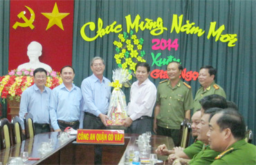 Các đồng chí lãnh đạo quận đã gửi lời chúc năm mới tới tập thể cán bộ, chiến sĩ, công nhân viên chức, đồng thời động viên các đơn vị quyết tâm hoàn thành tốt nhiệm vụ, đảm bảo an ninh trật tự thời điểm trước, trong và sau Tết, giúp người dân trên địa bàn quận đón Tết Giáp Ngọ 2014 vui tươi, lành mạnh, an toàn.