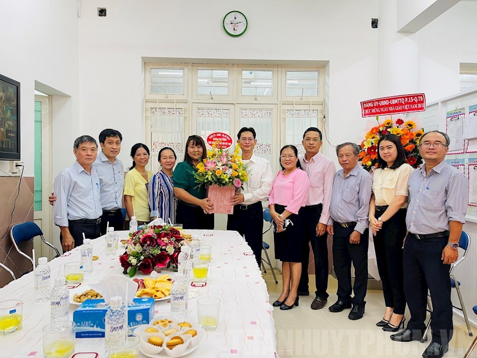 Cùng ngày, đồng chí Nguyễn Hoàng Long, Phó Bí thư Thường trực Quận ủy làm trưởng đoàn cũng đã đến thăm, chúc mừng cán bộ, giáo viên Trường Mầm non 15, Trường Tiểu học Tân Trụ, Trường Tiểu học Phan Huy Ích và Trường Tiểu học Nguyễn Văn Kịp.