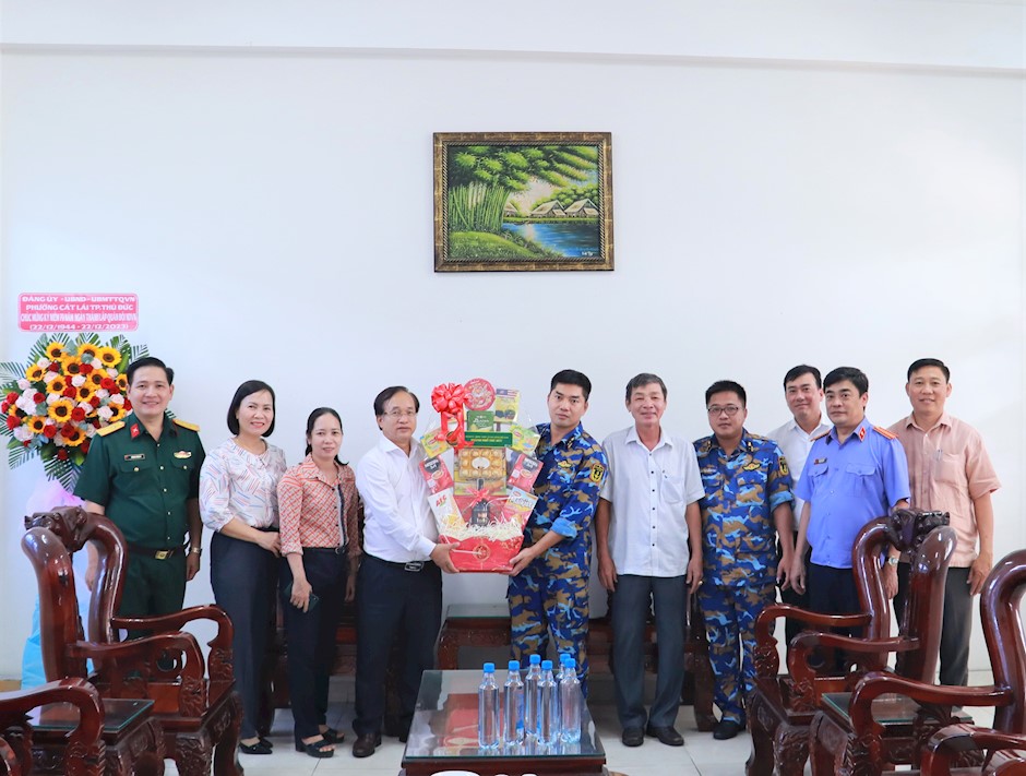 Dịp này, các đồng chí lãnh đạo TP Thủ Đức chúc tập thể cán bộ, chiến sĩ luôn mạnh khỏe, bình an, hạnh phúc; mong muốn các đơn vị tiếp tục đoàn kết, gắn bó, duy trì mối quan hệ chặt chẽ với chính quyền và Nhân dân thành phố để giữ vững an ninh chính trị, trật tự xã hội, an ninh quốc phòng trên địa bàn…