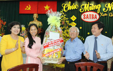Sáng 6/2, Chủ tịch UBND TPHCM Lê Hoàng Quân và Phó Chủ tịch UBND TPHCM Nguyễn Thị Hồng đã đến thăm và chúc Tết tập thể cán bộ công nhân viên Tổng Công ty thương mại Sài gòn (Satra) nhân ngày làm việc đầu năm mới.