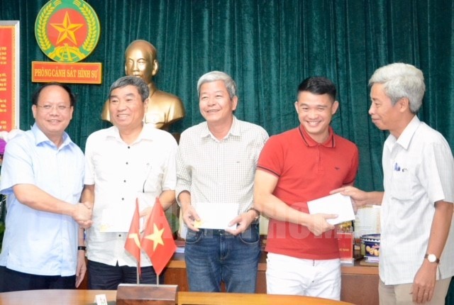 Phó Bí thư Thường trực Thành ủy TPHCM Tất Thành Cang (bìa trái) tặng quà, động viên PC45 – Công an TPHCM(Thanhuytphcm.vn)- Chiều 16/2, Ủy viên Trung ương Đảng, Phó Bí thư Thường trực Thành ủy TPHCM Tất Thành Cang thăm và động viên khen thưởng đột xuất Phòng Cảnh sát điều tra tội phạm về trật tự xã hội (PC45) – Công an TPHCM vì đã truy bắt được nghi can sát hại 5 người tại quận Bình Tân trong ngày 30 Tết.