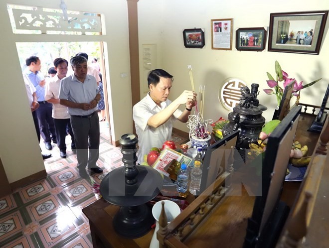 Trước đó, lãnh đạo TTXVN và các đại biểu đã đến thắp hương, dâng hoa tại Nhà lưu niệm Nhà báo, liệt sỹ Trần Kim Xuyến, Nhà bia tưởng niệm các liệt sỹ tại xã Sơn Mỹ.
