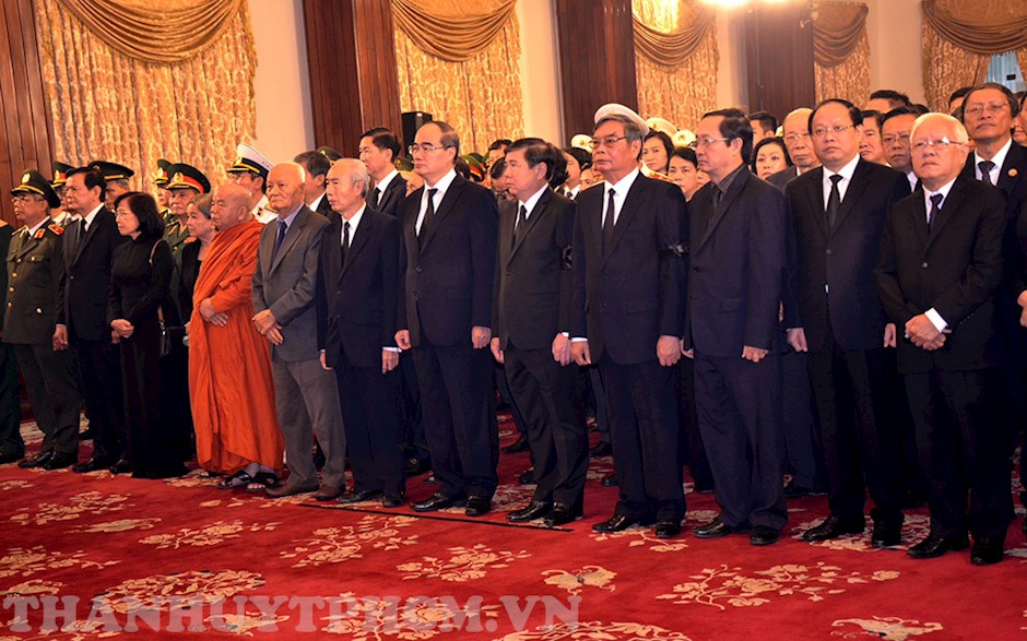 Lễ truy điệu nguyên Tổng Bí thư Đỗ Mười tại Hội trường Thống Nhất. (ảnh: Thy Dương)(Thanhuytphcm.vn) - Đúng 9 giờ sáng 7/10, đã diễn ra Lễ truy điệu đồng chí Đỗ Mười, nguyên Tổng Bí thư Ban Chấp hành Trung ương Đảng Cộng sản Việt Nam; nguyên Chủ tịch Hội đồng Bộ trưởng (nay là Thủ tướng Chính phủ) nước Cộng hòa xã hội chủ nghĩa Việt Nam; nguyên Cố vấn Ban Chấp hành Trung ương Đảng Cộng sản Việt Nam, tại Nhà Tang lễ Quốc gia (số 5 Trần Thánh Tông, Hà Nội). Cùng thời gian này, tại Hội trường Thống nhất (TPHCM) đã diễn ra Lễ truy điệu đồng chí Đỗ Mười.