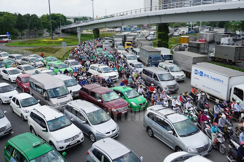 Tình trạng kẹt xe khu vực xung quanh sân bay Tân Sơn Nhất thường xảy ra vào giờ cao điểm.