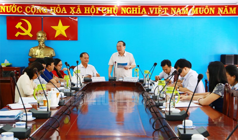 Phó Giám đốc Sở Nội vụ TPHCM Huỳnh Công Hùng kết luận tại buổi khảo sát.(Thanhuytphcm.vn) – Sáng 25/6, Đoàn công tác của Sở nội vụ TPHCM do đồng chí Huỳnh Công Hùng, Phó Giám đốc Sở Nội vụ TPHCM, Trưởng ban Thi đua khen thưởng thành phố làm trưởng đoàn đã có buổi khảo sát về công tác cải cách hành chính tại Quận 11. Tiếp đoàn có đồng chí Trương Quốc Cương, Phó Chủ tịch UBND quận cùng các ban ngành đoàn thể quận, lãnh đạo UBND 16 phường trên địa bàn quận.