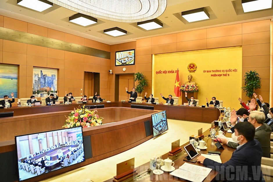 Các Ủy viên UBTVQH biểu quyết thông qua Nghị quyết(Thanhuytphcm.vn) - Tiếp tục chương trình phiên họp thứ 9, chiều 23/3, Ủy ban Thường vụ Quốc hội (UBTVQH) xem xét, thông qua dự thảo Nghị quyết về thời giờ làm thêm trong 1 tháng và trong 1 năm của người lao động.