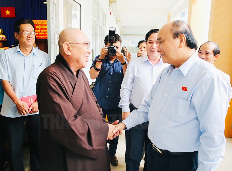 Đồng chí Ngô Minh Châu phát biểu tại buổi tiếp xúc.Bên cạnh đó, cần tiếp tục quan tâm, giải quyết các kiến nghị của cử tri nhất là các ý kiến của các chức sắc tôn giáo; tạo điều kiện thuận lợi, đảm bảo tốt hơn quyền tự do tôn giáo, tín ngưỡng của người dân. “Đây là chủ trương xuyên suốt của Đảng, Nhà nước trong những năm qua” - đồng chí Nguyễn Xuân Phúc nhấn mạnh.