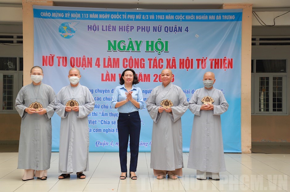Ngày hội “Nữ tu Quận 4 làm công tác xã hội từ thiện” nhằm phát huy truyền thống đoàn kết, tinh thần tương thân, tương ái của nữ tu Quận 4 đối với người có hoàn cảnh khó khăn, thể hiện tinh thần sống “Tốt đời, đẹp đạo” gắn với việc học tập và làm theo tư tưởng, đạo đức, phong cách Hồ Chí Minh. Ngày hội được tổ chức với nhiều hoạt động như: tuyên dương 5 nữ tu có nhiều đóng góp trong công tác an sinh xã hội; tuyên dương 3 nữ chủ nhà trọ tiêu biểu; trao tặng 10 phần quà cho nữ công nhân lao động, nữ công nhân ở khu nhà trọ, hội viên phụ nữ có hoàn cảnh khó khăn; tổ chức Hội thi “Ẩm thực chay”; “Gian hàng chia sẻ yêu thương” trao tặng 90 phần quà nhu yếu phẩm; bữa cơm nghĩa tình; nói chuyện chuyên đề “Vị thế của người phụ nữ trong giai đoạn hiện nay” cho đối tượng là nữ công nhân lao động, nữ công nhân ở khu nhà trọ.