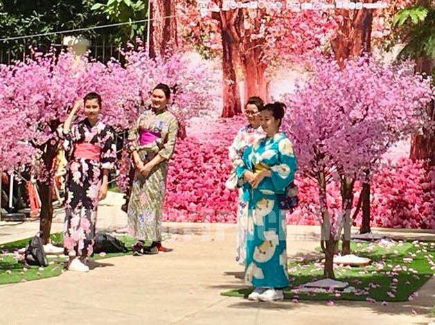 Các bạn trẻ chụp ảnh lưu niệm tại ngày hội với trang phục cổ truyền Nhật Bản.(Thanhuytphcm.vn) – Ngày 21/10, Trung tâm Văn hoá Quận 8 tổ chức lễ hội văn hóa Nhật Bản với chủ đề “Artist Day x Japan" dành cho giới trẻ.