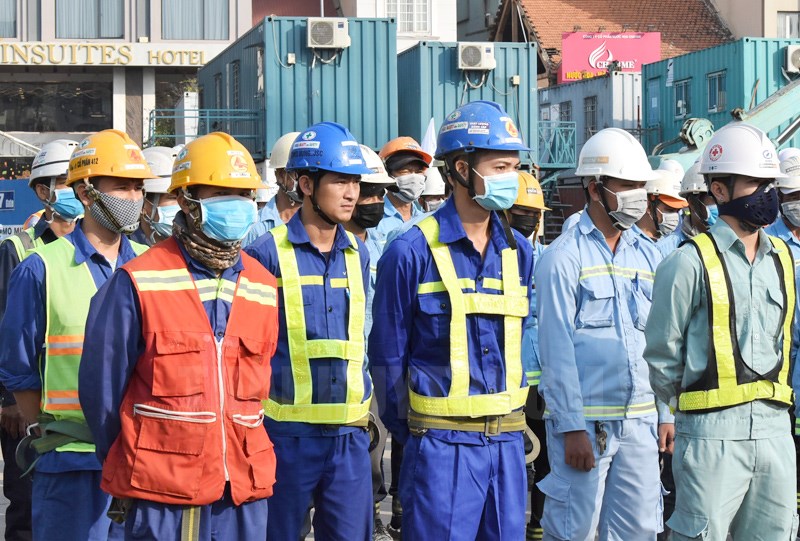 Kỹ sư, công nhân thi công tại dự án metro Bến Thành - Suối Tiên đeo khẩu trang phòng ngừa dịch Corona.(Thanhuytphcm.vn) - Sở Công thương TPHCM vừa có báo cáo về tình hình sản xuất và nhu cầu khẩu trang trên địa bàn TP.