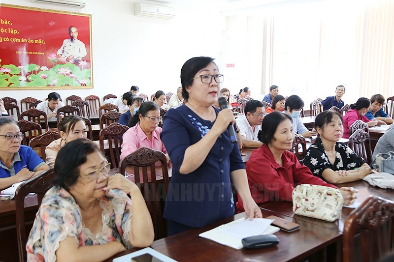 Ở phần trao đổi, thảo luận, đã có 6 lượt ý kiến phát biểu của người dân liên quan đến việc thực hiện nạo vét, vớt rác, khơi thông dòng chảy tại các tuyến kênh, rạch, cống xả, cửa xả trong thời gian qua. Trong đó, đa số người dân đều thể hiện sự phấn khởi, đồng tình ủng hộ với chủ trương của quận. Người dân đánh giá việc thực hiện nạo vét, vớt rác, khơi thông dòng chảy đã mang lại nhiều kết quả tích cực, giúp đảm bảo việc thoát nước, tạo cảnh quan xanh, sạch cho các tuyến kênh, rạch và giảm ô nhiễm, dịch bệnh.