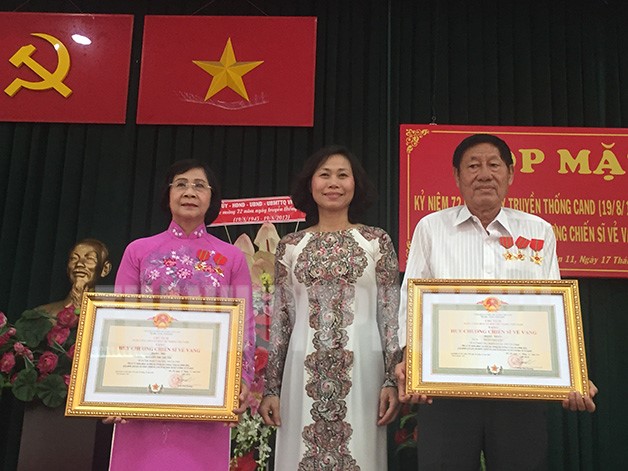 Đồng chí Nguyễn Thị Thu Hà (bìa trái), nguyên Phó Bí thư Thành ủy TPHCM nhận Huy chương Chiến sĩ vẻ vang(Thanhuytphcm.vn) - Sáng 17/8, Công an Quận 11 đã tổ chức lễ mít tinh Kỷ niệm 72 năm Ngày truyền thống Công an nhân dân (19/8/1945 – 19/8/2017) và công bố quyết định của Chủ tịch nước trao tặng Huy chương chiến sĩ vẻ vang cho các đồng chí nguyên là lãnh đạo Công an TPHCM và Công an Quận 11, trong đó có đồng chí Nguyễn Thị Thu Hà, nguyên Ủy viên Trung ương Đảng, nguyên Phó Bí thư Thành ủy TPHCM.