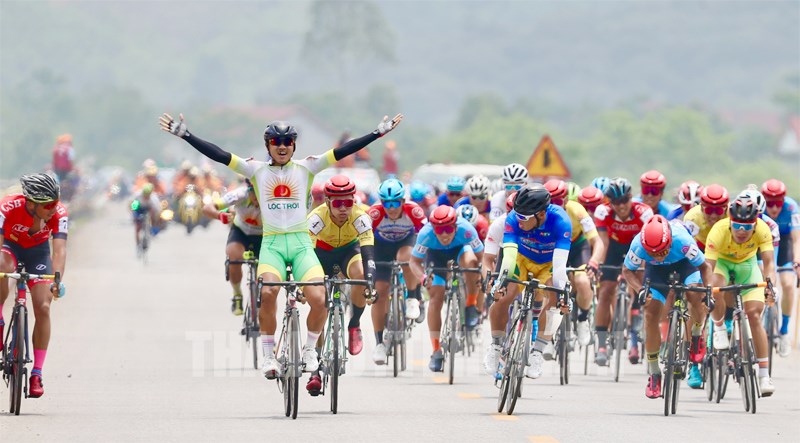 Nguyễn Tấn Hoài ăn mừng lần thứ 2 thắng chặng tại giải(Thanhuytphcm.vn) - Ngày 14/4, chặng 9 giải xe đạp Cúp Truyền hình TPHCM 2022, từ Thành phố Vinh (tỉnh Nghệ An) đến Phong Nha - Kẻ Bàng (tỉnh Quảng Bình) dài 206 km diễn ra gay cấn, tốc độ với những diễn biến bất ngờ thú vị.