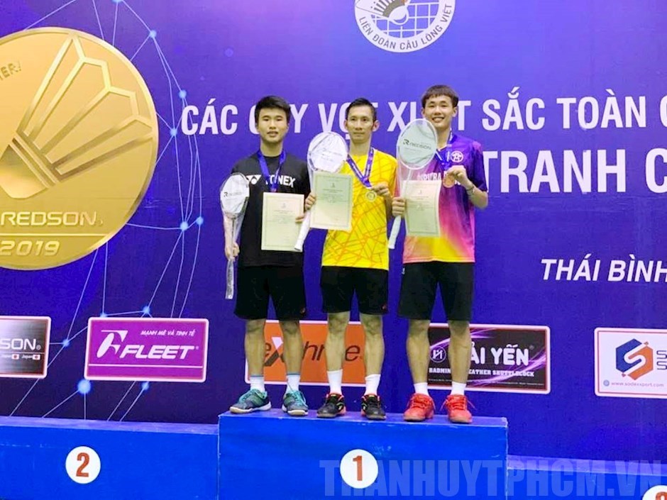 Nguyễn Tiến Minh (giữa) bảo vệ thành công chức vô địch thuyết phục dù đã bước sang tuổi 36. Ảnh: N.T.Minh(Thanhuytphcm.vn) - Ngày 12/10, tay vợt số 1 Việt Nam Nguyễn Tiến Minh đã bảo vệ thành công chức vô địch đơn nam giải cầu lông các cây vợt xuất sắc toàn quốc 2019, diễn ra tại Thái Bình sau khi vượt qua người đồng đội ở TPHCM là Nguyễn Hải Đăng trong trận chung kết.