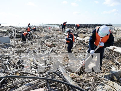 Cảnh tan hoang sau trận động đất, sóng thần ở Nhật Bản. (Nguồn: AFP/TTXVN)
