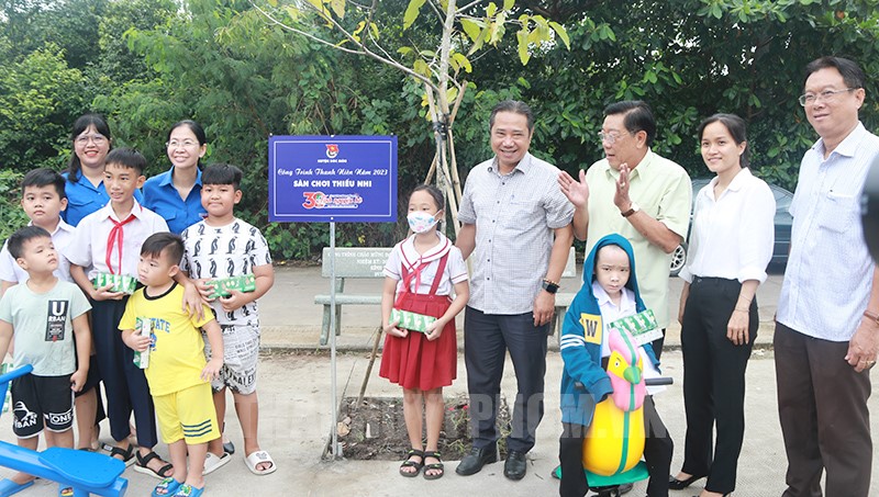 Đồng chí Phan Thị Thanh Phương và các đồng chí lãnh đạo huyện thực hiện nghi thức khánh thành Công trình thanh niên “Sân chơi thiếu nhi” tại xã Đông Thạnh(Thanhuytphcm.vn) - Ngày 30/7, Huyện đoàn huyện Hóc Môn tổ chức Ngày hoạt động cao điểm “Chiến sĩ tình nguyện xây dựng nông thôn mới” năm 2023.