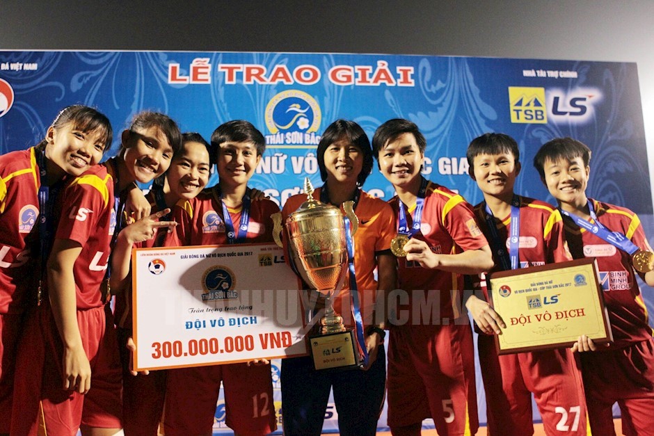 Thầy trò đội nữ TPHCM trong niềm vui vô địch quốc gia năm thứ 3 liên tiếp(Thanhuytphcm.vn) - Đội U22 Việt Nam thi đấu không thành công ở SEA Games 29, chất lượng V-League ngày càng đi xuống, Công ty VPF gặp nhiều biến động sau mùa bóng 2017 cùng sự rút lui của nhà tài trợ Toyota là những điểm đáng chú ý của bóng đá Việt Nam trong năm qua. Tuy nhiên, trong 365 ngày ấy, bóng đá Việt Nam cũng có những gam màu sáng làm hài lòng người hâm mộ…