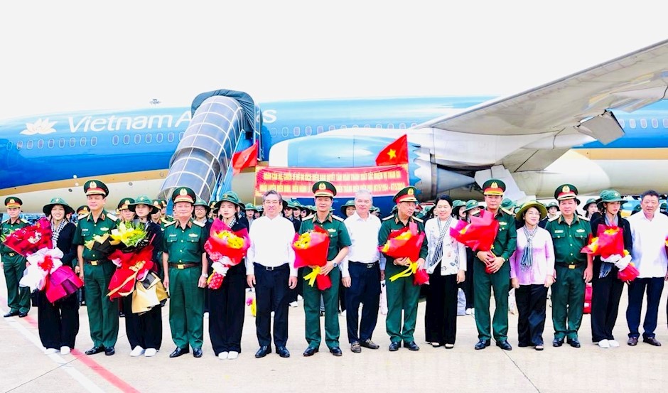 Đồng chí Nguyễn Phước Lộc cùng các đại biểu tặng hoa chúc mừng tại lễ xuất quân(Thanhuytphcm.vn) - Ngày 17/3, tại sân bay quốc tế Tân Sơn Nhất, Bộ Tư lệnh TPHCM tổ chức lễ xuất quân, tiễn Đoàn Khối nữ du kích miền Nam hành quân ra Trung tâm Huấn luyện Quân sự Quốc gia 4, Hà Nội và tỉnh Điện Biên thực hiện nhiệm vụ huấn luyện đội hình, đội ngũ tham gia Lễ diễu binh, diễu hành kỷ niệm 70 năm Chiến thắng Điện Biên Phủ (7/5/1954 - 7/5/2024).