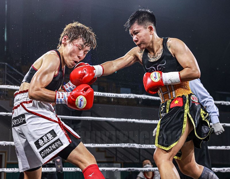 Một pha ra đòn chuẩn xác của Thu Nhi (phải). (Ảnh: N.T)(Thanhuytphcm.vn) - Hơn 1 năm trước, Nguyễn Thị Thu Nhi là nữ võ sĩ quyền anh chuyên nghiệp đầu tiên của Việt Nam tạo nên kỳ tích khi giành đai boxing WBO châu Á - Thái Bình Dương ở hạng cân nhẹ. Chiều 23/10, tại Ansan - Hàn Quốc, Thu Nhi giành chiến thắng ở trận tranh đai boxing WBO thế giới vào để trở thành võ sĩ Việt Nam đầu tiên giành chiếc đai danh giá này.