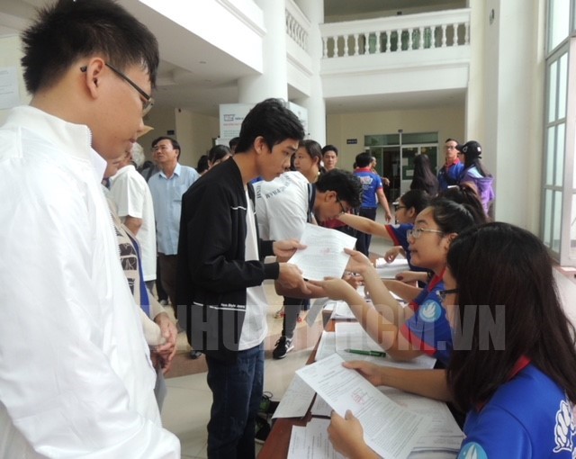 Thí sinh nộp hồ sơ xác nhận nhập học vào Trường ĐH Sư phạm TPHCM năm 2017(Thanhuytphcm.vn) - Theo Thông tư sửa đổi, bổ sung tên và một số điều của Quy chế tuyển sinh đại học (ĐH) hệ chính quy; tuyển sinh cao đẳng (CĐ) nhóm ngành đào tạo giáo viên hệ chính quy do Bộ Giáo dục - Đào tạo (GDĐT) vừa ban hành cho biết, đối với phương thức xét tuyển dựa vào kết quả học tập THPT để vào ngành thuộc nhóm ngành đào tạo giáo viên, yêu cầu học sinh tốt nghiệp THPT có học lực lớp 12 xếp loại giỏi mới được xét tuyển trình độ ĐH.