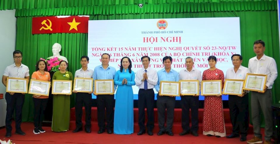 Dịp này, Hội Nông dân TP tặng Bằng khen cho 11 tập thể, 7 cá nhân đã có thành tích xuất sắc trong 15 năm thực hiện Nghị quyết số 23-NQ/TW của Bộ Chính trị (khóa X) về tiếp tục xây dựng và phát triển văn học, nghệ thuật trong thời kỳ mới.