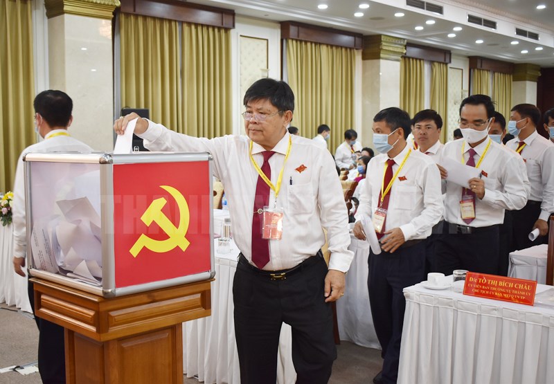 Các đại biểu bỏ phiếu bầu Ban Chấp hành Đảng bộ Khối Ngân hàng TP lần thứ VII, nhiệm kỳ 2020 - 2025.(Thanhuytphcm.vn) - Sau 2 ngày diễn ra, chiều 31/8, Đại hội Đại biểu lần thứ VII Đảng bộ Khối Ngân hàng TPHCM, nhiệm kỳ 2020 - 2025 đã bế mạc. Tham dự có Ủy viên Ban Thường vụ Thành ủy, Chủ tịch Ủy ban MTTQ Việt Nam TP Tô Thị Bích Châu; Phó Chủ nhiệm Ủy ban Kiểm tra Thành ủy Nguyễn Thị Phương Mai.