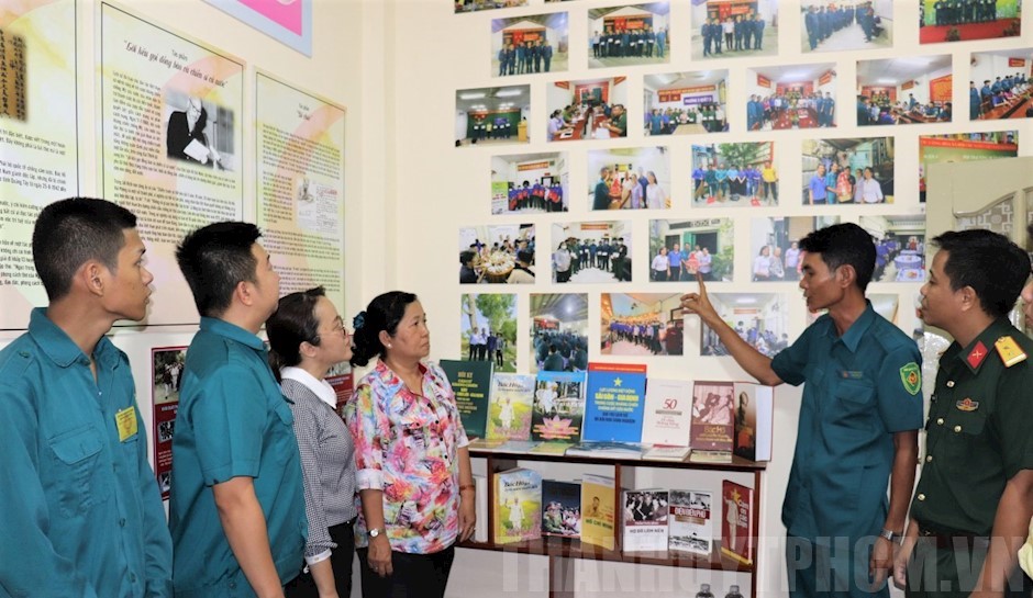 Lực lượng vũ trang và đại biểu tham quan Không gian văn hoá Hồ Chí Minh tại trụ sở Ban Chỉ huy Quân sự Phường 3(Thanhuytphcm.vn) - Chiều 29/6, Phường 3, Quận 3 tổ chức Lễ ra mắt không gian văn hóa Hồ Chí Minh tại trụ sở Đảng uỷ - UBND Phường 3 và trụ sở Ban Chỉ huy Quân sự (CHQS) phường. Tham dự lễ ra mắt có các đồng chí: Đặng Trần Nguyễn, Phó trưởng Ban Thường trực Ban Tuyên giáo Quận uỷ Quận 3; Trung tá Ngô Văn Phương, Quận ủy viên, Chính trị viên Ban CHQS Quận 3; Trung tá Phạm Văn Tú, Phó Chỉ huy trưởng Ban CHQS Quận 3; Huỳnh Thị Bạch Yến, Bí thư Đảng uỷ Phường 3; Phạm Anh Tuấn, Phó Bí thư Thường trực Đảng ủy Phường 3; Nguyễn Thị Lan Anh, Phó Bí thư Đảng ủy, Chủ tịch UBND phường…