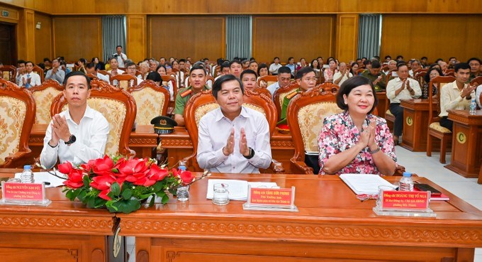Đồng chí Tăng Hữu Phong, Phó Trưởng Ban Tuyên giáo và Dân vận Thành ủy TPHCM (giữa) và các đại biểu dự hội nghị