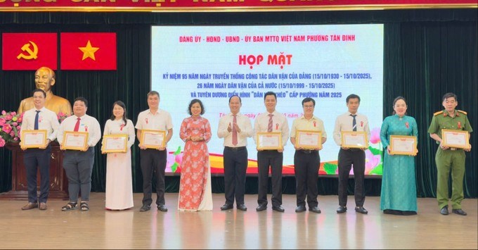 Ngày 9/10, Đảng ủy phường Tân Định (TPHCM) tổ chức họp mặt kỷ niệm 95 năm Ngày Truyền thống công tác Dân vận của Đảng (15/10/1930 – 15/10/2025), 26 năm Ngày Dân vận của cả nước (15/10/1999 – 15/10/2025), tuyên dương các tập thể, cá nhân thực hiện tốt phong trào thi đua “Dân vận khéo” năm 2025.