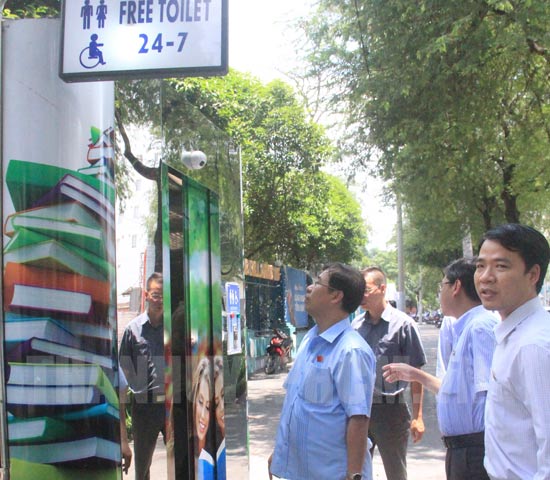 Đoàn khảo sát đi thực tế nhà vệ sinh công cộng phục vụ người dân và du khách trên vỉa hè 116 Nguyễn Du, Quận 1