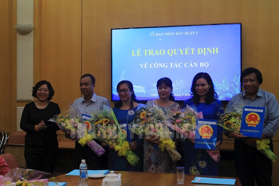 Tại buổi lễ, UBND Quận 1 đã công bố 9 quyết định bổ nhiệm, bổ nhiệm lại và luân chuyển cán bộ Quận 1. Cụ thể, đồng chí Nguyễn Vũ Linh, nguyên Bí thư Quận đoàn 1 giữ chức vụ Chủ tịch UBND phường Cầu Kho nhiệm kỳ 2016 - 2021; đồng chí Dương Tự Quốc Khánh, Chỉ huy phó Ban Chỉ huy Quân sự phường Cô Giang giữ chức vụ Chỉ huy trưởng Ban Chỉ huy Quân sự phường Cô Giang. Bổ nhiệm lại đồng chí Bùi Trường Giang giữ chức vụ Phó trưởng phòng Tư pháp Quận 1 thời hạn 5 năm và đồng chí Nguyễn Thị Bích Phúc giữ chức vụ Phó Hiệu trưởng Trường Mầm non Tân Định đến ngày 1/1/2023.