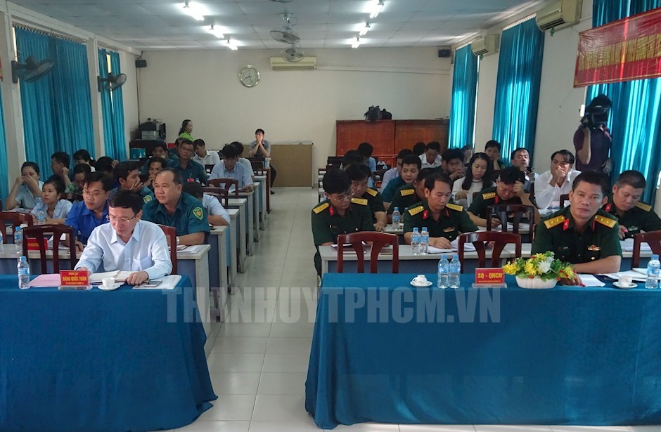 Hội nghị đã nghe đồng chí Trung tá Phạm Viết Thanh, Chính trị viên Ban CHQS quận quán triệt mục đích, yêu cầu, nội dung các Quy định và các hướng dẫn nêu trên.