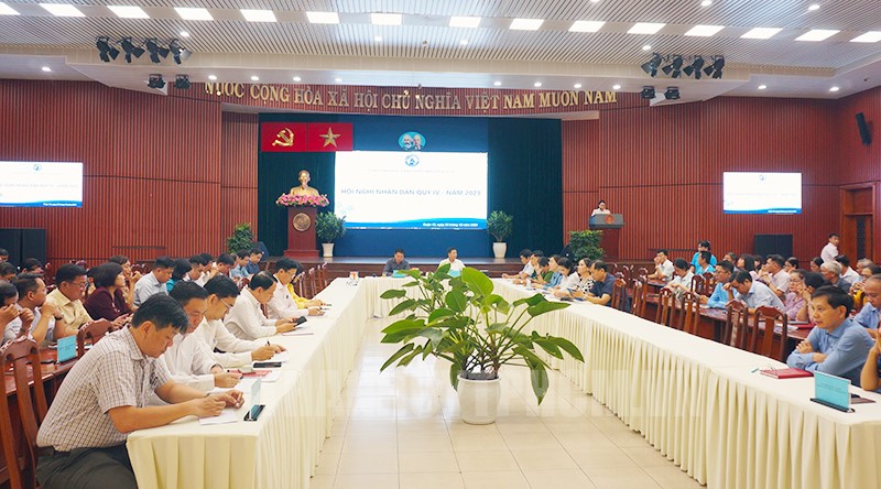 Quang cảnh hội nghị.(Thanhuytphcm.vn) - Ngày 28/12, UBND Quận 12 phối hợp Ủy ban MTTQ Việt Nam quận tổ chức hội nghị Nhân dân quý IV năm 2023. Đồng chí Nguyễn Văn Đức, Phó Bí thư Quận ủy, Chủ tịch UBND quận; đồng chí Lê Tấn Tài, Chủ tịch Ủy ban MTTQ Việt Nam quận chủ trì hội nghị.