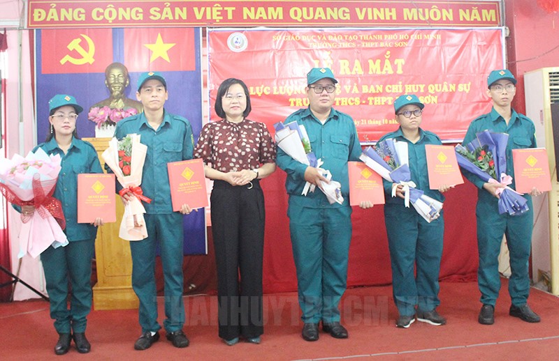 Theo đó, Bộ Tư lệnh TPHCM đã có quyết định thành lập Ban Chỉ huy Quân sự Trường THCS - THPT Bắc Sơn; bổ nhiệm đồng chí Hoàng Thúy Hồng, Bí thư chi bộ, Hiệu trưởng nhà trường giữ chức vụ Chỉ huy trưởng; bổ nhiệm đồng chí Đặng Văn Thạch, Phó Bí thư chi bộ, Tổng quản nhiệm nhà trường giữ chức vụ Chính trị viên.