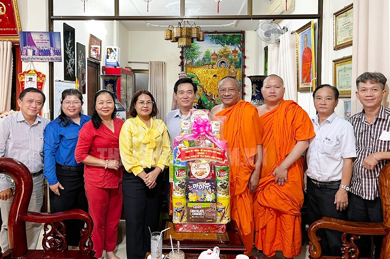 Đoàn do Ủy ban MTTQ Việt Nam Quận 3 tổ chức tặng quà mừng lễ Sen Dolta năm 2023 cho đại diện chùa Chantarangsay.(Thanhuytphcm.vn) - Chiều 13/10, Ủy ban MTTQ Việt Nam Quận 3 tổ chức đoàn đến thăm và chúc mừng chùa Chantarangsay nhân lễ Sen Dolta năm 2023. Đoàn do đồng chí Huỳnh Gia Giang, Ủy viên Ban Thường vụ, Chủ tịch Ủy ban MTTQ Việt Nam Quận 3 làm Trưởng đoàn.