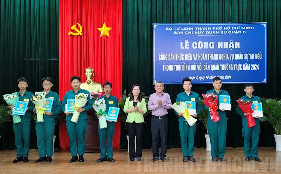 Tại buổi lễ, Trung tá Nguyễn Thanh Sang, Phó Chỉ huy trưởng Ban CHQS Quận 3 đã công bố Quyết định của Bộ Tư lệnh TPHCM và của UBND Quận 3 về giao chỉ tiêu xây dựng lực lượng dân quân thường trực năm 2024. Theo đó, Ban CHQS Quận 3 trao quyết định cho 31 đồng chí dân quân hoàn thành nghĩa vụ tham gia dân quân thường trực năm 2024 và trao quyết định 31 công dân tham gia nghĩa vụ dân quân thường trực năm 2024.