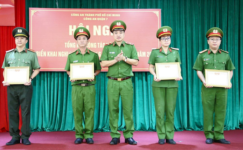 Dịp này, Quận 7 đã tuyên dương khen thưởng cho các tập thể và cá nhân (4 đơn vị quyết thắng; 3 đơn vị tiên tiến; 56 Chiến sĩ Thi đua và 313 cá nhân) đã có thành tích xuất sắc trong Phong trào thi đua “Vì An ninh Tổ quốc” năm 2023.