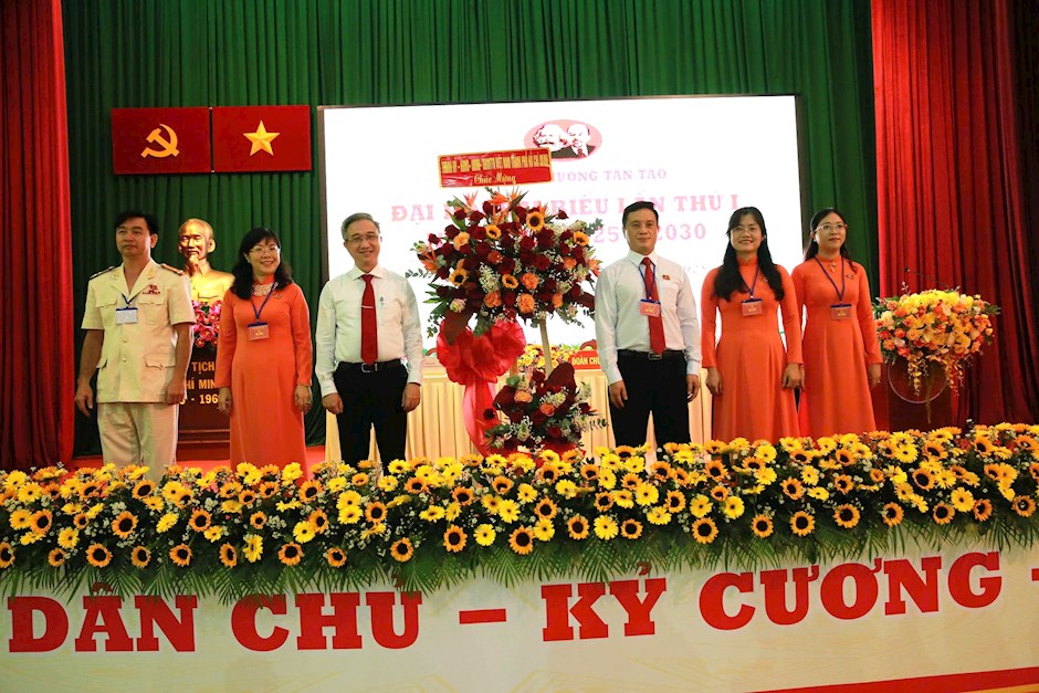 Phó Bí thư Thành ủy TPHCM Đặng Minh Thông tặng hoa của Thành ủy - HĐND - UBND - Ủy ban MTTQ Việt Nam TPHCM chúc mừng đại hộiNgày 14/8, Đảng bộ phường Tân Tạo (TPHCM) tổ chức Đại hội đại biểu lần thứ I, nhiệm kỳ 2025-2030.