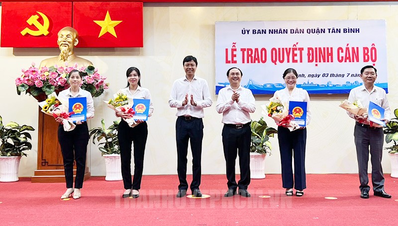Tại buổi lễ, UBND quận công bố và trao 4 quyết định tiếp nhận, điều động, bổ nhiệm, bổ nhiệm lại cán bộ. Cụ thể, bổ nhiệm đồng chí Trần Thị Thủy Cúc, Trưởng Phòng Dân số - Truyền thông và Giáo dục sức khỏe, Trung tâm Y tế quận giữ chức vụ Phó Giám đốc Trung tâm Y tế quận Tân Bình; thời hạn bổ nhiệm là 5 năm. Bổ nhiệm lại chức vụ Trưởng Phòng Quản lý đô thị đối với đồng chí Mai Văn Thuận; thời hạn bổ nhiệm lại 5 năm. Điều động, bổ nhiệm đồng chí Trần Thị Thanh Xuân, Phó Chánh Thanh tra quận giữ chức vụ Phó Chánh Văn phòng UBND quận; thời hạn bổ nhiệm là 5 năm. Tiếp nhận, điều động, bổ nhiệm đồng chí Nguyễn Thị Bích Tho, chuyên viên Ban Tổ chức Quận ủy giữ chức vụ Phó Chánh Thanh tra quận; thời hạn bổ nhiệm là 5 năm.