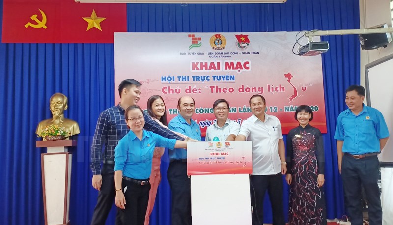 Lễ khai mạc hội thi.(Thanhuytphcm.vn) - Sáng 13/5, Ban Tuyên giáo Quận ủy quận Tân Phú phối hợp với Liên đoàn Lao động quận và Quận Đoàn tổ chức lễ khai mạc hội thi trực tuyến “Theo dòng lịch sử”. Đến dự lễ khai mạc có các đồng chí: Hồ Xuân Lâm, Phó Chủ tịch Liên đoàn Lao động TPHCM; Ngô Tấn Nam, Quận ủy viên, Phó Trưởng ban Thường trực Ban Tuyên giáo Quận ủy; Phạm Ngọc Lan, Quận ủy viên, Chủ tịch Liên đoàn Lao động quận Tân Phú.